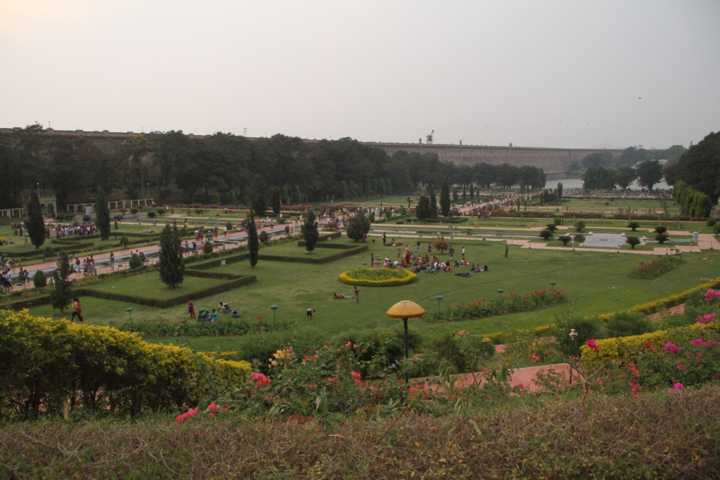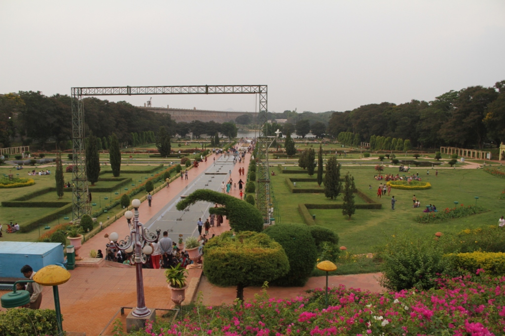 Brindavan Garden is one of the most celebrated gardens in India and is a tribute to early 20th century engineering. Its construction started in 1927 and was completed in 1932. The design is laid out in three terraces which contain water fountains, ficus trees and ornamental plants.