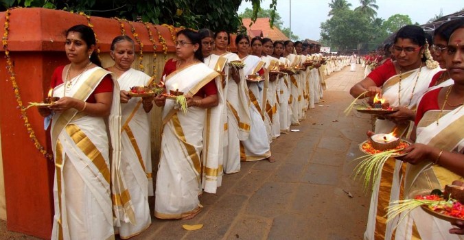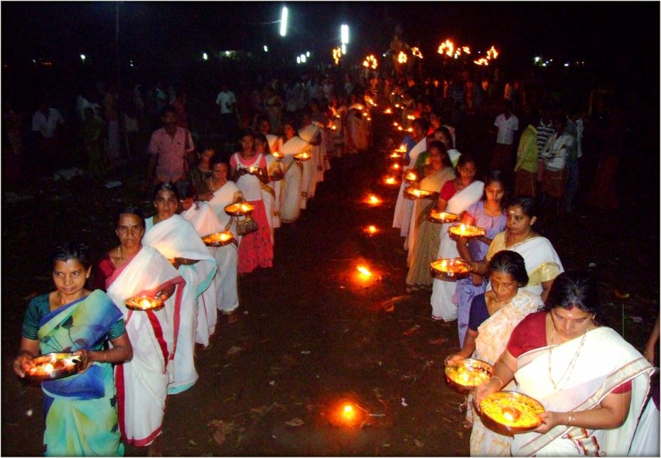Thalappoli is a traditional and ritual procession carried out by young girls and ladies of Kerala to attract happiness and prosperity in the community which holds the festival. The participants wear traditional dress and hold thalam (a metal plate) in their hands filled with fresh paddy, flowers, rice, coconut and a lighted lamp.