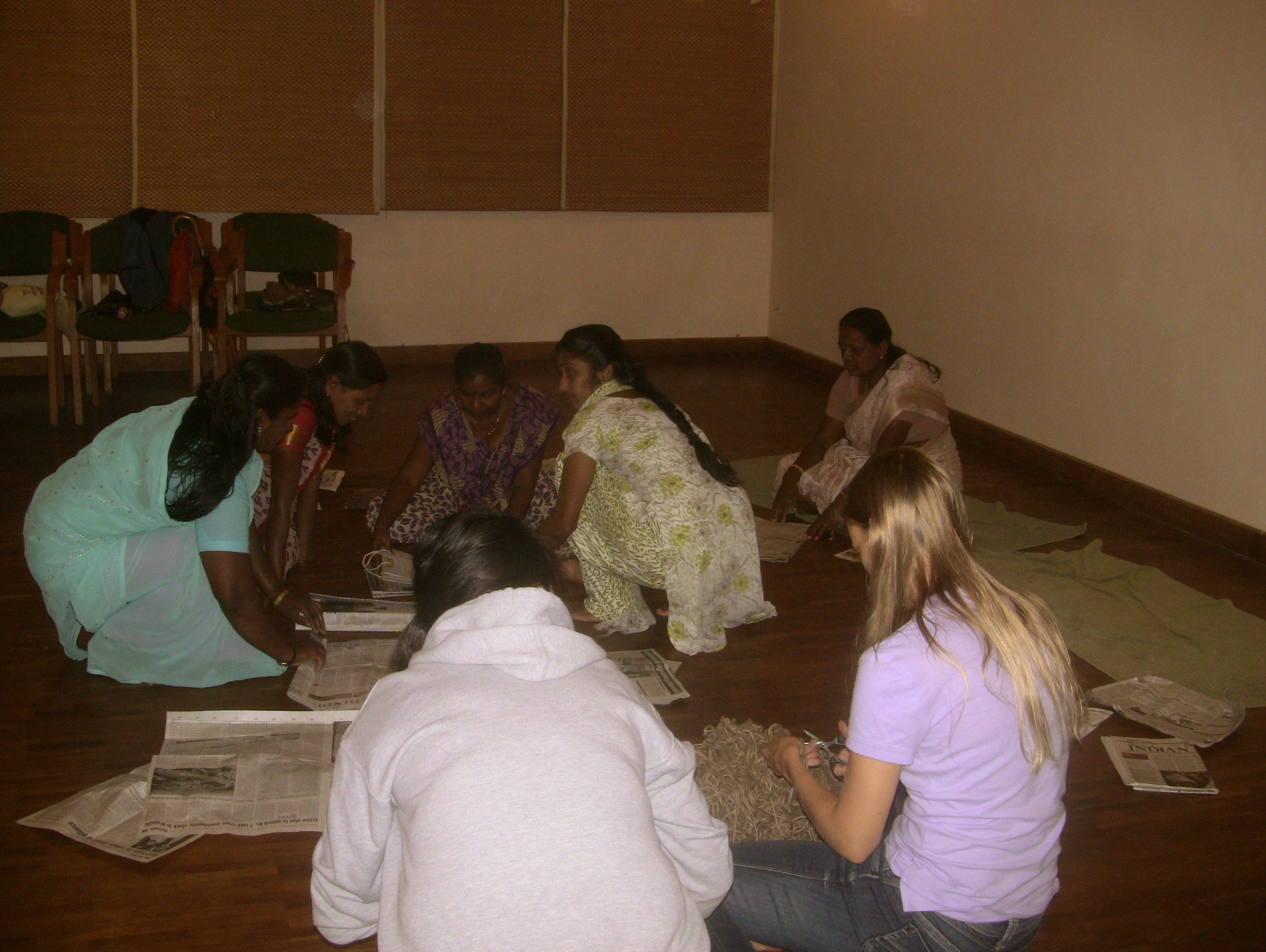 This year with the advice of long term partners such as Salim E.I. and Diwia Thomas, interns on the social entrepreneurship team set up a workshop to train beginner-bag-makers. 15 trainees, men and women from around Kumily came to the Learning Laboratory at Cardamom County to be trained on how to make solid, trendy newspaper bags.