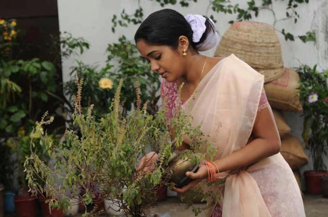 Tulsi Thara is a sacred stone platform in front of traditional Kerala houses on which the Holy Basil (tulsi) plant is grown. Tulsi is a sacred herb known as the Queen of the herbs. Tulsi Thara is made to welcome the Goddess Lakshmi. In mornings and evenings a burning lamp is placed on the platform.
