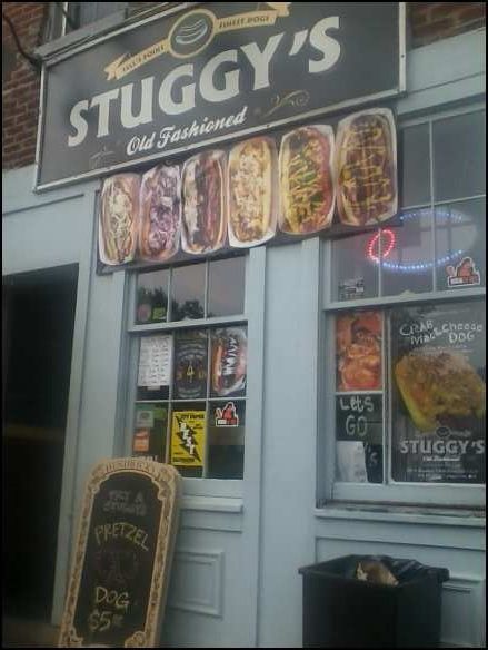 Hungry after all the “shopping,” Milo and I walked around Fell’s Point, a historic waterfront neighborhood, looking for a place to eat. As we passed a place named Stuggy’s I felt we had hit upon the right spot, because with a name like that it had to be good. A “gourmet hot dog” joint, this was the best fastfood I’ve ever had, from the sauerkraut- and “Stuggy’s sauce”-covered hot dog to the spicy cheese fries–I didn’t even need ketchup! I was so far along in eating my meal that I almost forgot to take a photo with my sad camera-phone, and somehow none of this felt all that unhealthy, either.