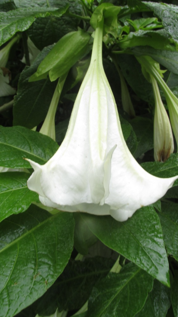 Angel’s Trumpet is native to Tropical America but naturalised in India, especially in the Western Ghats up to 2000 meters. It’s a tall shrub with very large drooping trumpet-shaped white flowers.