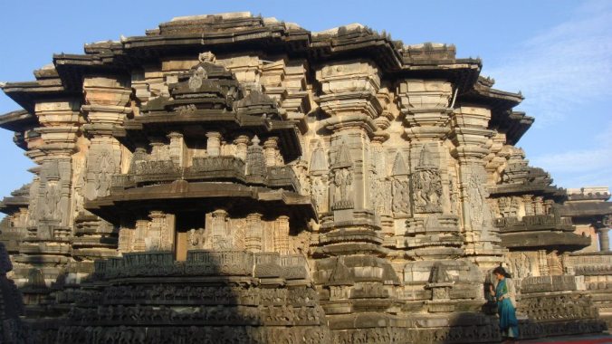 Hoysaleswara temple was built during 12th and 13th century Hoysala Empire by King Vishnuvardhana. Dedicated to Lord Shiva, the ground-plan of the temple is the characteristic star shape common to all the Hoysala temples. Hoysaleswara is actually formed by two temples joined by a common veranda. The temple of the north is known as the Shantaleshwara temple and is named after the beloved Queen Shantala Devi. The capitals of the pillars in the sanctum were once crowned with detailed sculpted pieces of women dancing. On the lower-most section, thousands of elephants are carved in a single piece of stone, each one depicting different actions. The temple includes around thirty-five thousand sculpted pieces.
