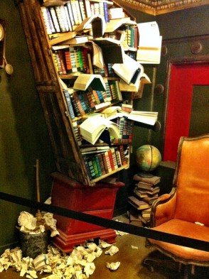 The day those bookshelves were installed was both an end and a beginning. It was the beginning of my treating books like objects and the end of my venerating them as relics. The order of the library, the logic of the archive, the structure of the bookstore all faded that day; suddenly, my books were mine to play with and I could do with them as I pleased. I could arrange them by height or by color. I could divide them with whatever objects I wanted: the painted deer skull I had been given as a dream catcher, the glow-in-the-dark vampire mask I had bought on a family vacation, the ornate carousel music boxes I had collected.