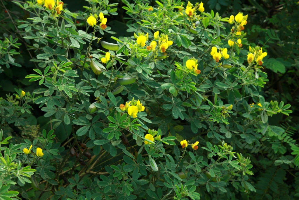 Common Rattle Pod plants are frequently found along river banks and fields as well as in the hills up to 1200 meters. The flowers are showy and large, and favored by carpenter bees.