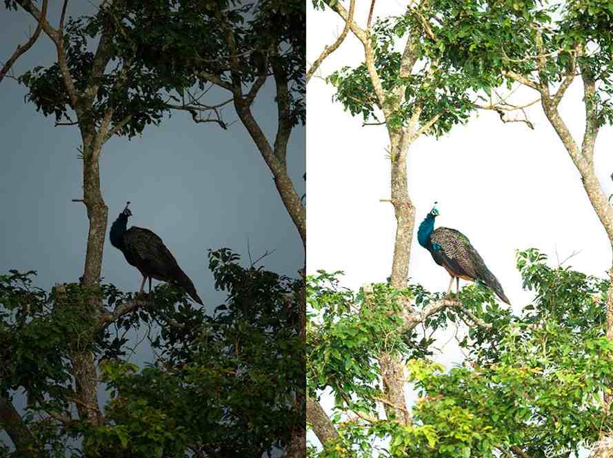 Above is an example of one of the most common issues photographers face when they shoot against the overcast sky. As you can see in the left side image, the camera tries to expose to the background which is very bright and evens it out to a medium tone (core concept of exposure) when you are shooting in evaluative or matrix metering mode.