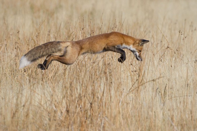 8 Lucky pounce: “Anticipating the pounce — that was the hardest part,” says Connor Stefanison, who had come to Yellowstone National Park in Wyoming, in search of wildlife as much as the spectacular landscape. He had found this fox, his first ever, on his last day in the park. It was so absorbed in hunting that Connor had plenty of time to get out of the car and settle behind a rock. It quartered the grassland, back and forth, and then started staring intently at a patch of ground, giving Connor just enough warning of the action to come. When it sprung up, Connor got his shot. And when it landed, the fox got his mouse.(Connor Stefanison / Wildlife Photographer of the Year 2013) #