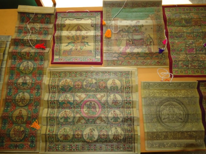 Each 3-dimensional piece is different, depicting various stories from Indian mythology like Mahabharata and Ramayana, as well as various Gods and Goddesses. This an ancestral art is passed down from generation to generation is his village.