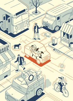 The Google car knows every turn. It never gets drowsy or distracted, or wonders who has the right-of-way. Illustration by Harry Campbell.