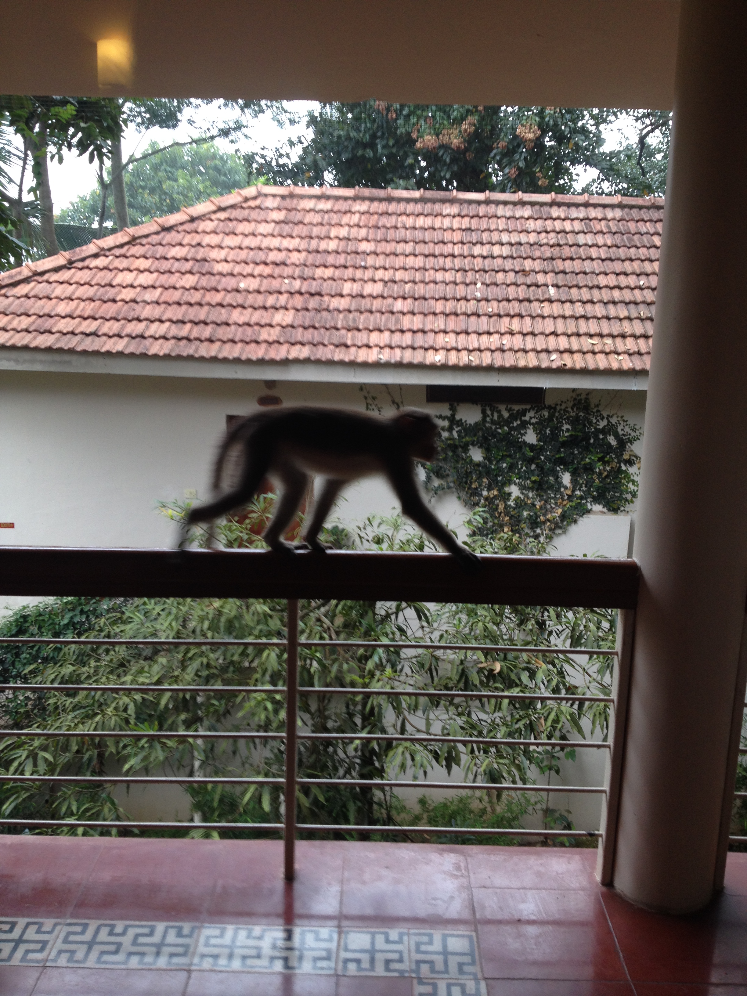 I remember monkeys creating havoc in my hometown, but sadly they all have disappeared into the forests or where I wouldn’t know. So when I saw a group of them in the balcony of my room, I was startled and had to rush inside. But I am told that they are only mischievous but the main rule is not to engage or provoke them.
