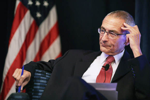 “I told them that changed the odds from a virtual certainty—ninety-five to five—that he’d approve it, to probably fifty-one to forty-nine that he would not approve it,” Podesta said. “And so the blood drained from their heads! I probably said that for effect. I probably didn’t quite believe what I was saying. It probably actually had been reduced to sixty-forty that he’d approve it. But I think now it’s a fifty-fifty proposition.”