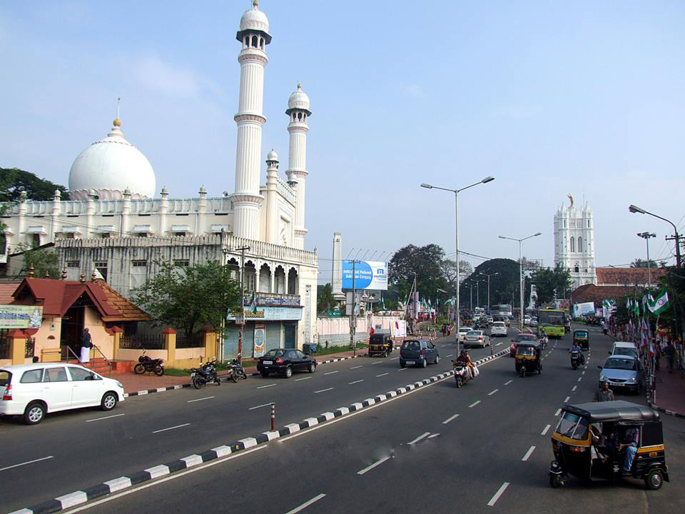 Palayam Mosque is located in the heart of Trivandrum, the political capital of Kerala. Typical of Kerala’s comfortable blend of religions and cultures, a temple and a church stand in its vicinity.