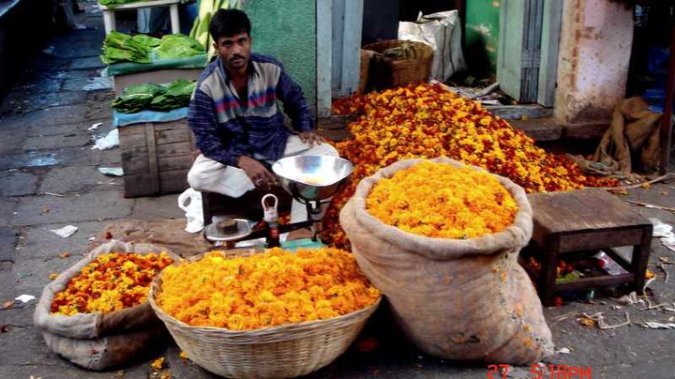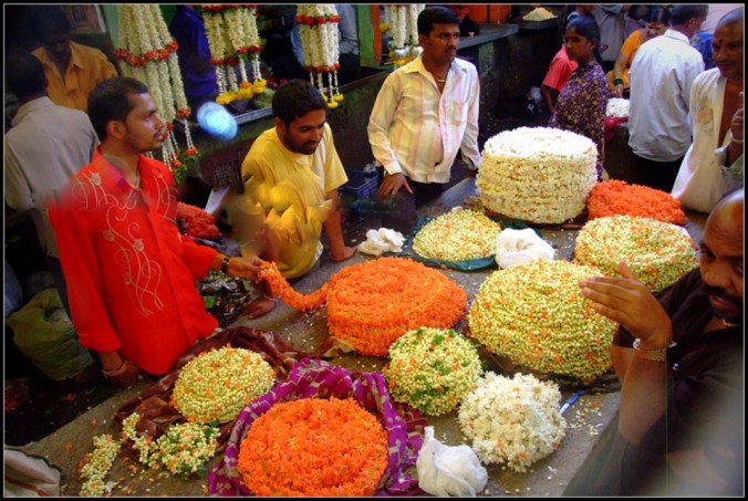 Flowers are an integral part of Indian festivals; people use them on a daily basis for offerings to their gods and goddesses at home. In India, people come door-to-door, similar to the way milk men make deliveries, and provide fresh flowers to every household — the large demand for floral offerings is catered to by the flower markets prominent in almost every major city in India.