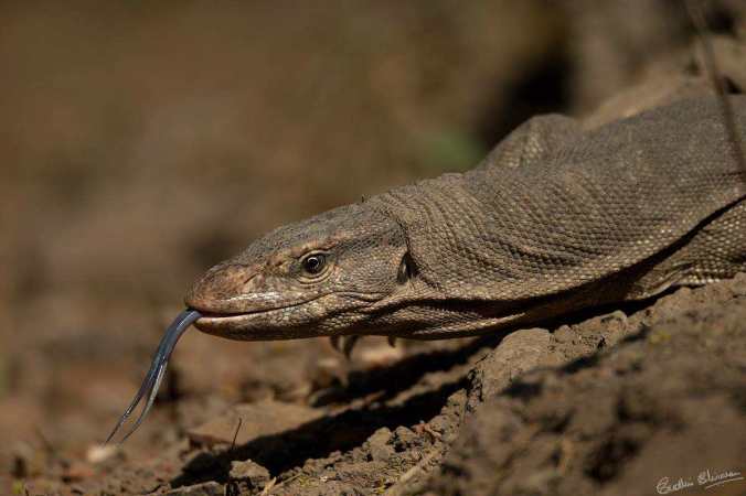 The Keoladeo Ghana National Park (also known as Bharatpur Bird Sanctuary) is home to numerous species including the Indian Monitor Lizard. They are quiet easy to photograph as they come out in the sun to bask.