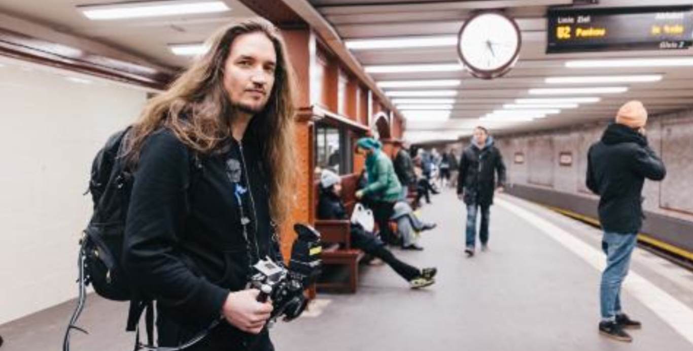 …A COUPLE OF MORNINGS after our first encounter, I arrange to meet Magyar at Alexanderplatz, one of Berlin’s busiest subway stations, for a demonstration of the Stainless project. I arrive at the height of rush hour, and wait for ten minutes at one end of the crowded platform before he appears. His long hair spills over his black parka, which is matched by black work boots, black jeans, and a black daypack. Inside the pack, Magyar carries his customized Optronis video camera and a laptop. Four cables, blue and black, poke out of the bag. He says the bulky apparatus makes him feel like “the guy from Ghostbusters.” After his run-in with the police at Union Station, Magyar adapted his equipment so that he can conceal it inside a backpack, but to my eye the new setup seems likely to raise even more suspicions.