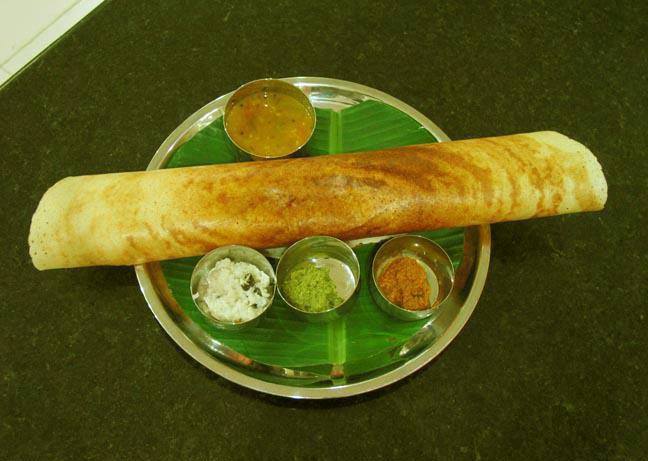 Ghee Dosa is a popular breakfast or late afternoon snack in South India. The main ingredients for the batter are black gram dal, rice flour and ghee, which is drizzled over the cooking dosa, making it crispy and golden brown.