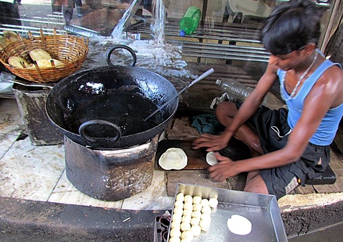 Poori is frequently served with peas or chickpeas in gravy for breakfast, lunch or dinner.