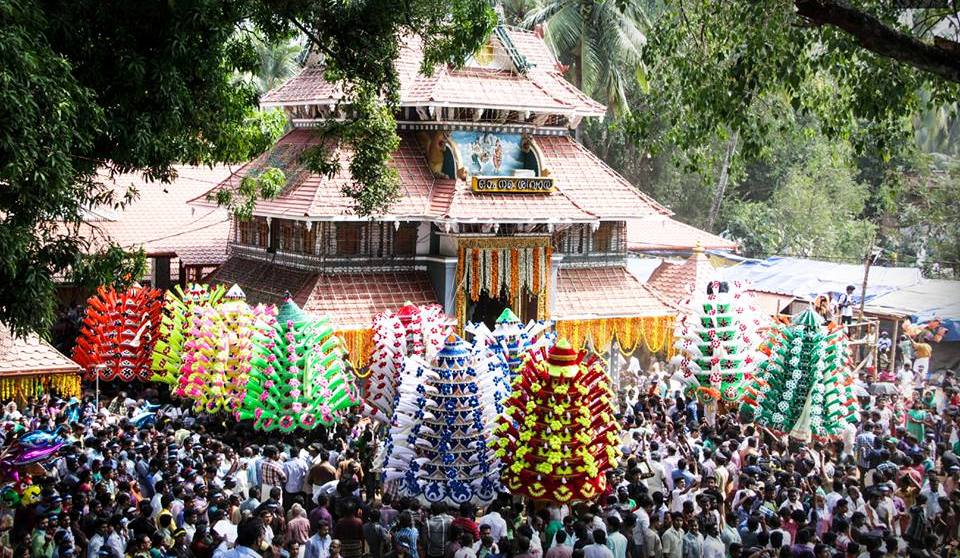 Pookavadi is a wooden arch richly decorated with flowers. The five to ten foot high structure takes the form of a temple and is carried on the shoulders of a male devotee is called Ambalakavadi.