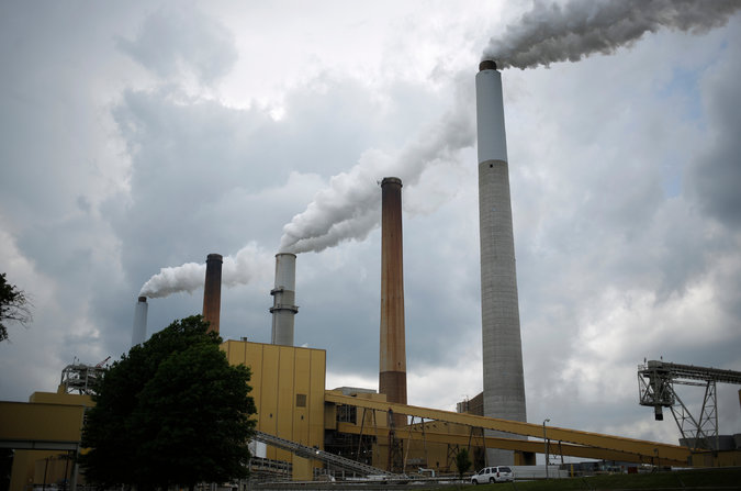 Carbon dioxide emissions like those from coal-fired power plants should be taxed to spur energy innovation. Credit Luke Sharrett for The New York Times