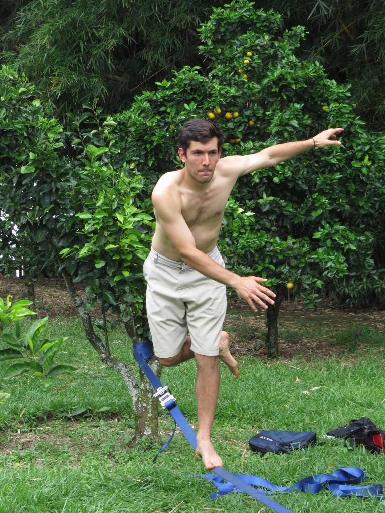 Seth and I have been having a lot of fun learning how to slackline here at Xandari Resort. (I packed a line in my bag.) We have found ideal spots in Xandari’s orchard, where the wafting smells of citrus fruits, mangos, and papaya conduce relaxed and steadied walking. In the future, we’ll put up a video showing the fruits of our labors—for now, we’re just trying to get it down!