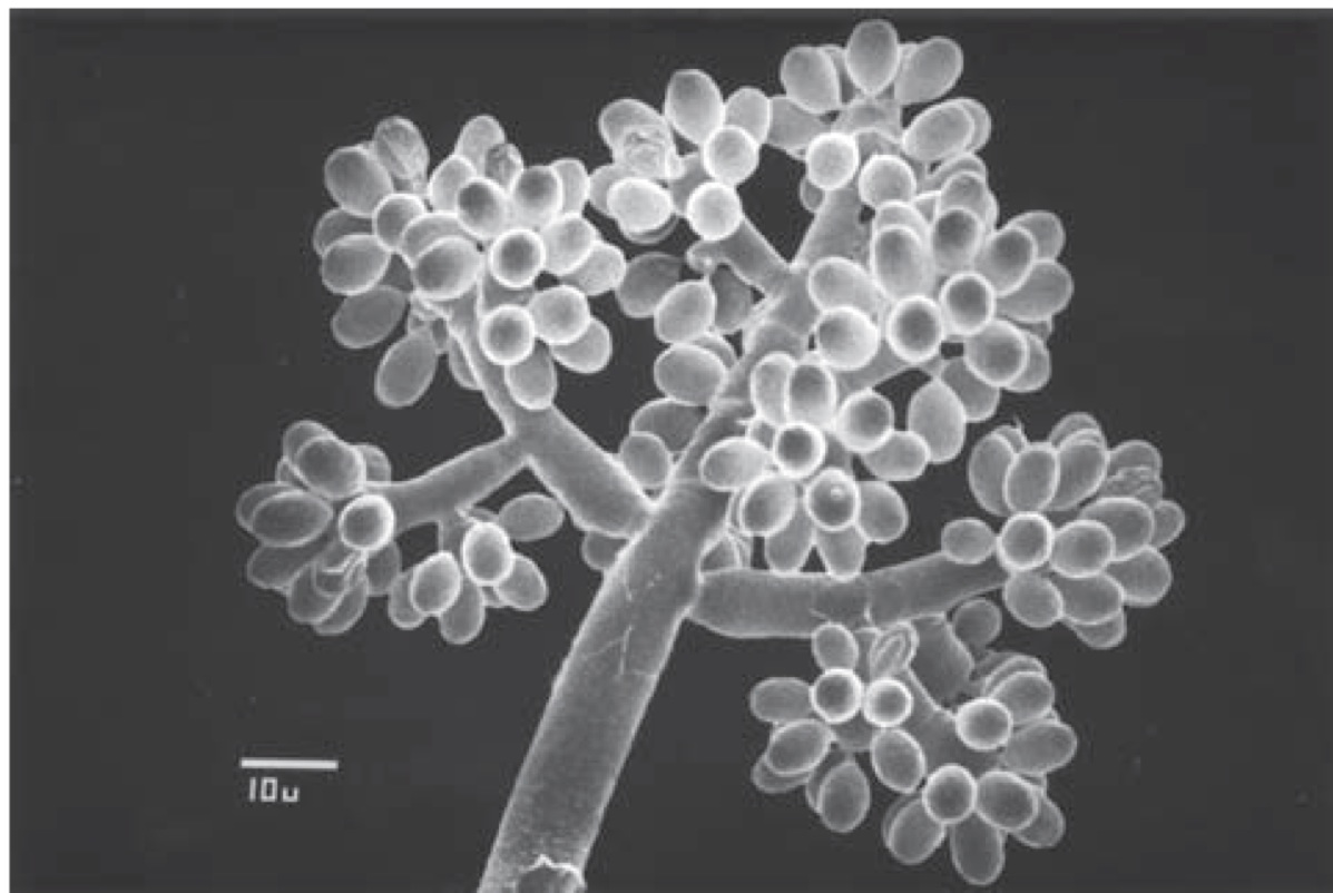 Jackson. Figure 9.1 – Grape-like cluster of Botrytis cinerea spores (conidia) produced on the spore-bearing structure, the conidiophore.