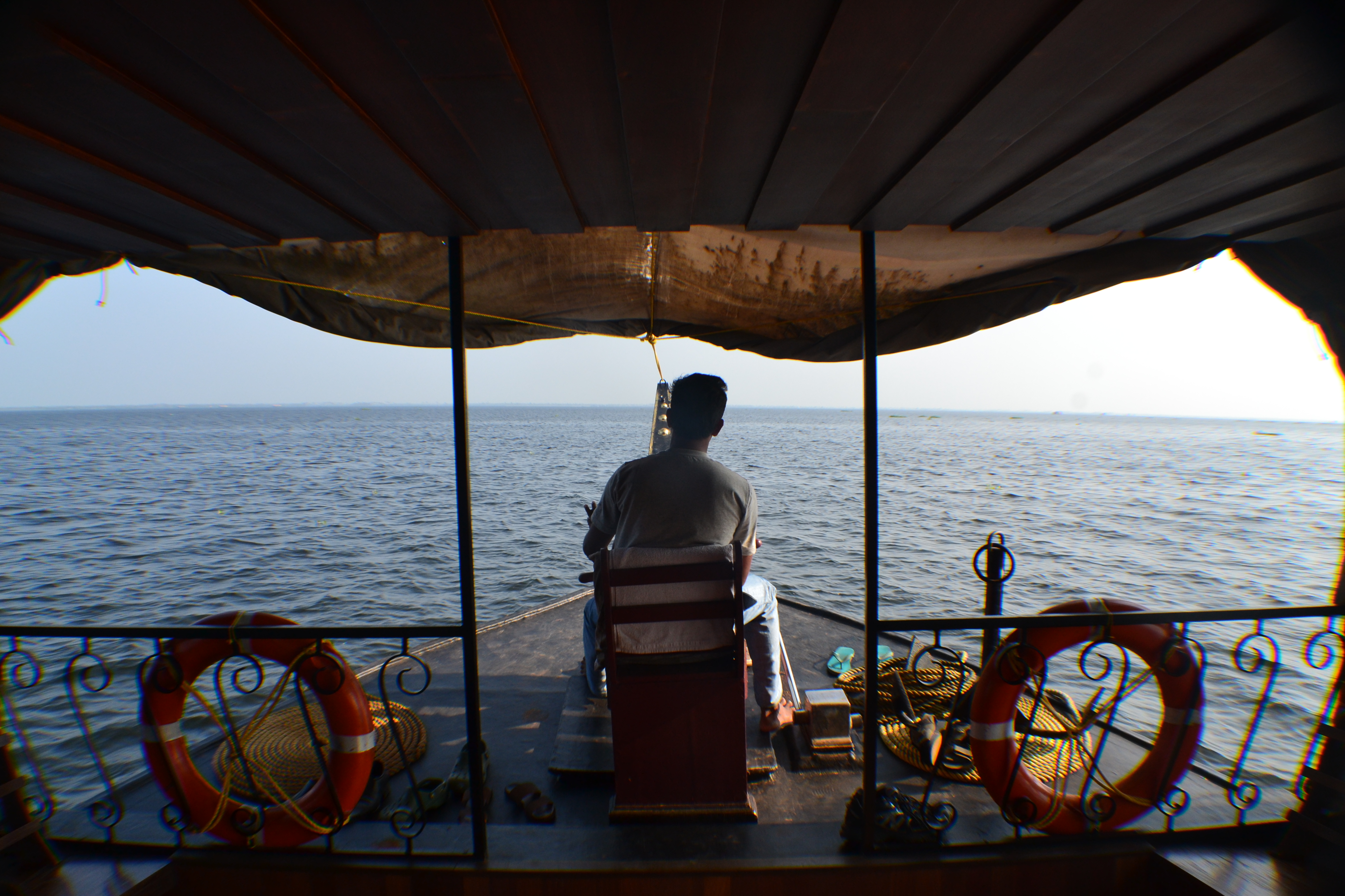 Our group of four was greeted with “tender coconuts” to drink while we got settled into the boat and into our bedrooms. Our houseboat was over 100ft long with three bedrooms, a dining room, an upstairs lounge deck and all the amenities of a hotel (including AC), I was in awe. The outside was covered in a coconut palm woven shell tied together by coconut husk rope. Truly a product of “Kerala”, meaning “Land of Coconuts”. Lake Vembanad is the getaway into the largest system of backwaters of India with over 900km of waterways and stretching more than half way across the state of Kerala. On these waterways, barges once traveled that transported rice from the surrounding areas that were then converted into kettuvallams, commonly known now as houseboats. The jackfruit wood hull of our boat was handcrafted in the traditional way with no nails – hand tied together and treated with fish oil.