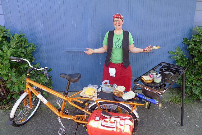 Hot Bike is a mobile kitchen on the back of a bicycle that enables Apothocurious to offer velo-food, culinary demonstrations and unconventional fundraising in unique locations. Photo credit: Hot Bike!