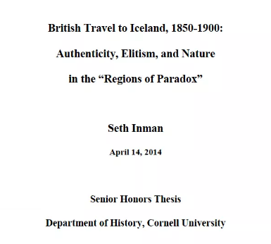 It’s been exactly — down to the same date, funnily enough — four months since I posted anything about Iceland in particular, seven months since I shared an excerpt from my honors thesis, and one year since I submitted that thesis to the history department at Cornell University. It’s interesting that as I write this I’m back in Ithaca, on campus, and during the last week have been involved in the proofreading process for two friends writing English theses to be turned in tomorrow. And then, coincidentally but not by chance, Hua Hsu writes a book review in the New Yorker that revolves around how to write a thesis.