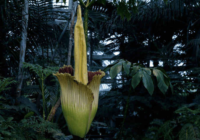 I first became aware of the amazing Amorphophallus titanum 4 years ago during a “bloom watch” of a Kenneth Post Lab Greenhouses specimen at Cornell University. At the time the concept of a “Greenhouse Cam” was completely new to me, and I followed it, and the science behind the study of the plant, with fascination. Despite the rarity of the flower, a handful have bloomed within the past several years, the most recent being at the New York Botanical Garden.