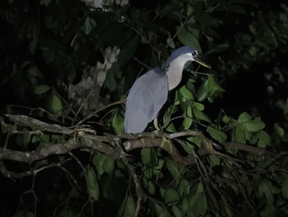 The first sighting was a Mexican redrump tarantula, close to a swollen riverbank. Not my favorite type of “wildlife” to observe for the beginning of an evening tour but an impressive animal nonetheless. Among the feathery, more charming species we saw were a Barn Owl, Boat-billed Heron, Yellow-crowned Night-Heron, Common Pauraque, and a Yucatan Nightjar. The four-legged wildlife we saw were the white tailed deer, a Morelete’s crocodile, an agouti and of course, our most precious, jaguar.