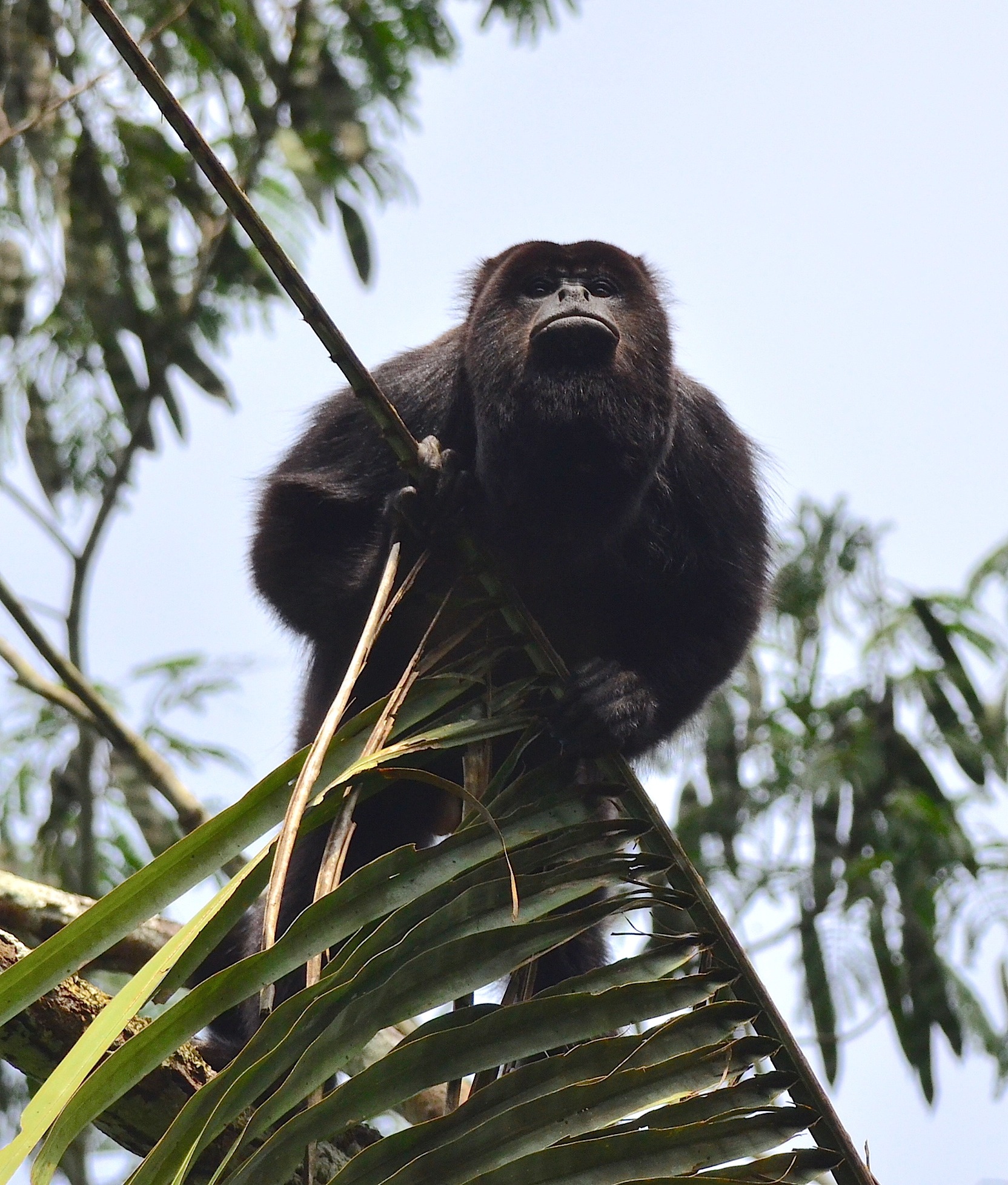 After my morning shift I went for my usual walk with my camera on Sylvester Village Road, looking at the beautiful surroundings and listening to the sounds of the forest. I heard something very unusual, which was a little frightening when I realized the sound was coming from above me. I looked up just in time to see a howler monkey giving birth. It was a very emotional moment, and when I finally felt calm enough to lift my camera I caught the mother bringing the baby up to her face on film.