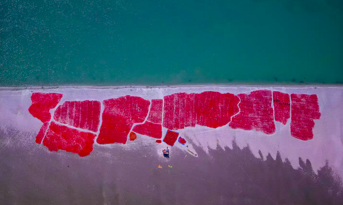 The Sirajganj and Bogra region is famous for red chillies. Mile after mile, they produce and process the finest spice in Bangladesh. Being a boy from Bogra, I always wanted to shoot this vast red beauty from the top. I got the opportunity when I was flying on the banks of Jamuna, in Sirajganj.