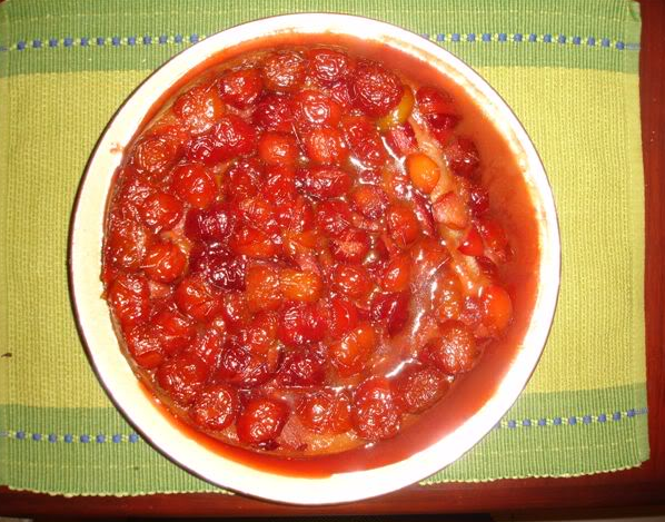 One of the many special things about this type of tart is that despite the “cross fingers” task of flipping it onto the waiting platter (the tart is baked upside down, i.e.fruit on bottom, crust on top) and the occasionally fickle process of cooking the fruit in a caramelizing mixture of sugar and butter, if the fruit was good to begin with it will be delicious no matter how it looks in the end!
