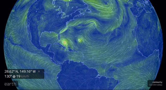 EARTH collaborates with information from scientific organizations such as NASA and NOAA to create an interactive visualization of global weather conditions forecast by super computers updated every three hours. The actual global images are a fascinating swirl of wind and current, reminiscent of a Vincent Van Gogh painting. The ocean surface current estimates are updated every five days, ocean surface temperatures and anomaly from daily average (1981-2011) are updated daily, and ocen waves are updated every three hours – all of which combine to present a moving canvas of what is presently occurring on this blue marble of a planet.
