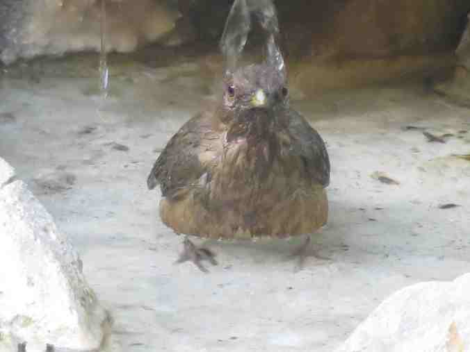 Clay-colored Thrush (national bird of Costa Rica) taking a bath in our little waterfall