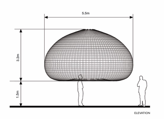 At night, the mysteriously hovering and glowing large Urchins create a sense of magic as if time has stopped. When viewers enter into the Urchins, they will be surrounded by a single layer of glowing, lacy surface, where they can enjoy the detail and texture of the Urchins and see the city, water and the sky through this visual filter. When other viewers see the occupants in the Urchins, the occupants will glow within the lacy room, creating an illusion of ethereal levitation of the occupants, while the occupants become a part of the art work.