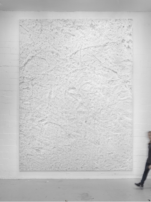 It’s hard to tell at first glance what they depict. Stars in the sky? A moonscape? Some images appear from a distance like a three-dimensional sculpture but all are in reality perfectly flat, falling “somewhere between a photograph and a painting,” in Mr. Guariglia’s words.
