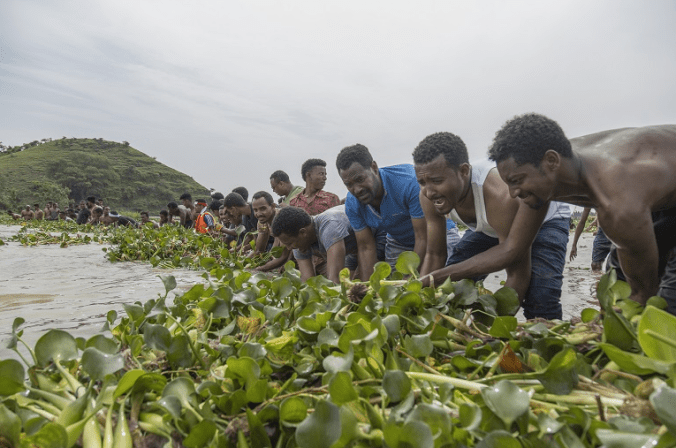 Community pulls water-thirsty invasive weeds from Ethiopia’s Lake Tana