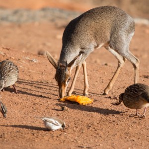 I usually do this for 3-4 hours at a stretch, with the starlings coming and going. They don’t stay put at the food for very long, and while they are gone foraging or flying around elsewhere, the papaya tends to attract all sorts of other visitors: francolins, barbets, dik-diks, hornbills, bulbuls, sparrows, and once even a pair of black-backed jackals. Suffice to say, fieldwork is never boring!