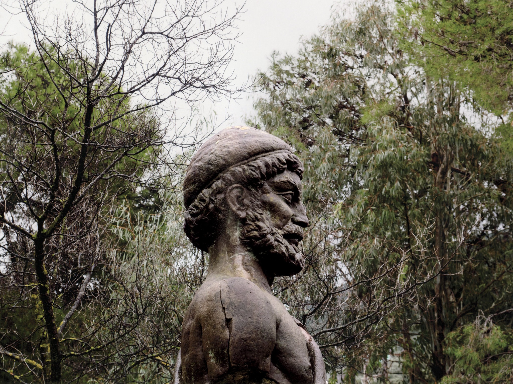 As ever, the specific sites on Odysseus’ island were enigmatic at best. Getting out of the car on my way to the stunning mountaintop village of Exogi, I walked along an unpaved path to the “School of Homer,” to be rewarded only by a ravishing view of olive trees and blue-green coves far below. In the small village of Stavros, a set of display boards featured an essay titled “Ithaca: Conceptual Place.” On Ithaca, the piece began, “the past nor the present exist. The present is not what one would consider contemporary, but it is situated in a limbo. A reality that would choose to be up-to-date but is unable to be so.” Noting that nobody really knows what existed here or didn’t, the author went on, “On the island, there is Nothing! … Nothing …”