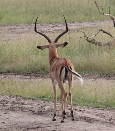 The next most common mammal in Akagera is easily the impala, whose horns have quite a graceful curve to them (only the males grow these), as you can see in the photo I’ve included to the right. Impala were usually in big groups of more than twenty individuals, sometimes separated by gender and constantly on the watch for predators. All antelopes in the savanna will engage in this latter behavior, and we were lucky to see a bunch of other species as well, like the rich, dark brown topi (which apparently translates to “mud” in Swahili), the small bushbuck and pretty large waterbuck, and massive eland and tiny oribi.