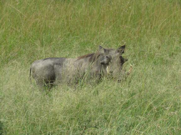 Warthogs will often feed while folding their front legs under them to be closer to the ground, which makes it tough to get a good look at their faces