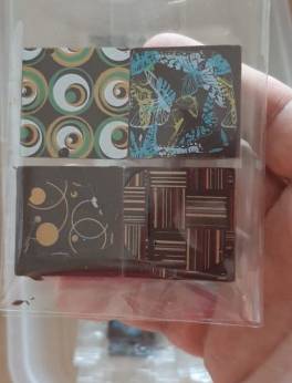 Four samples of Nahua chocolate: 100%; 90%; 70%; and one with an additional ingredient to be identified during the tasting session