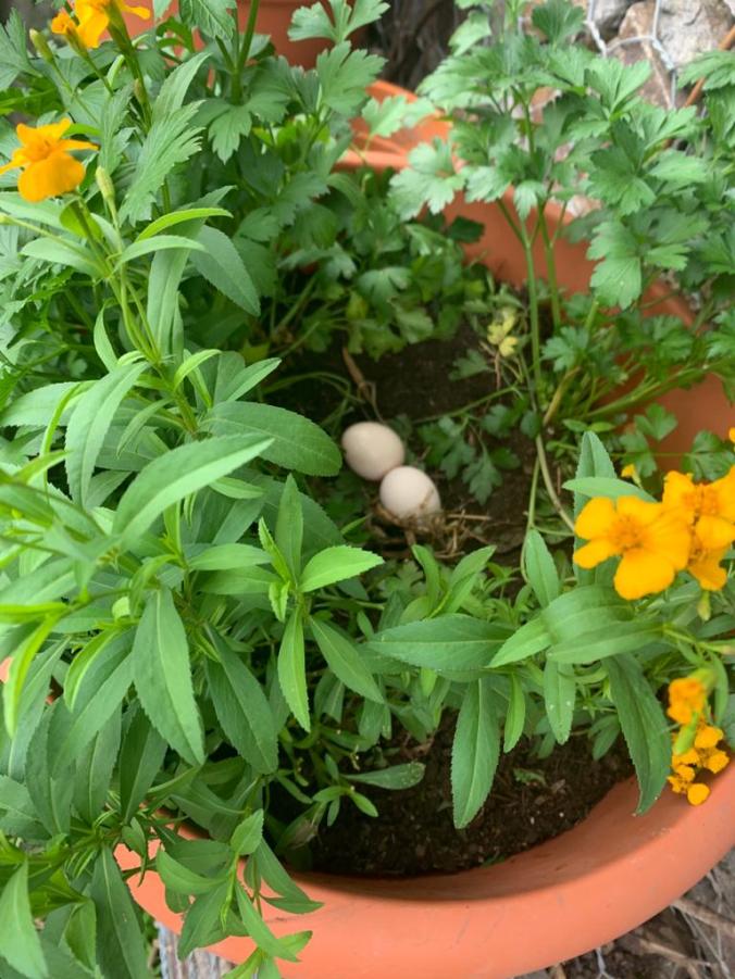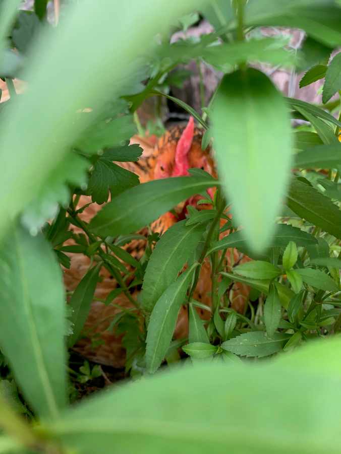 When I came back to inspect the damage to the herbs, I instead found what she was really doing there.
