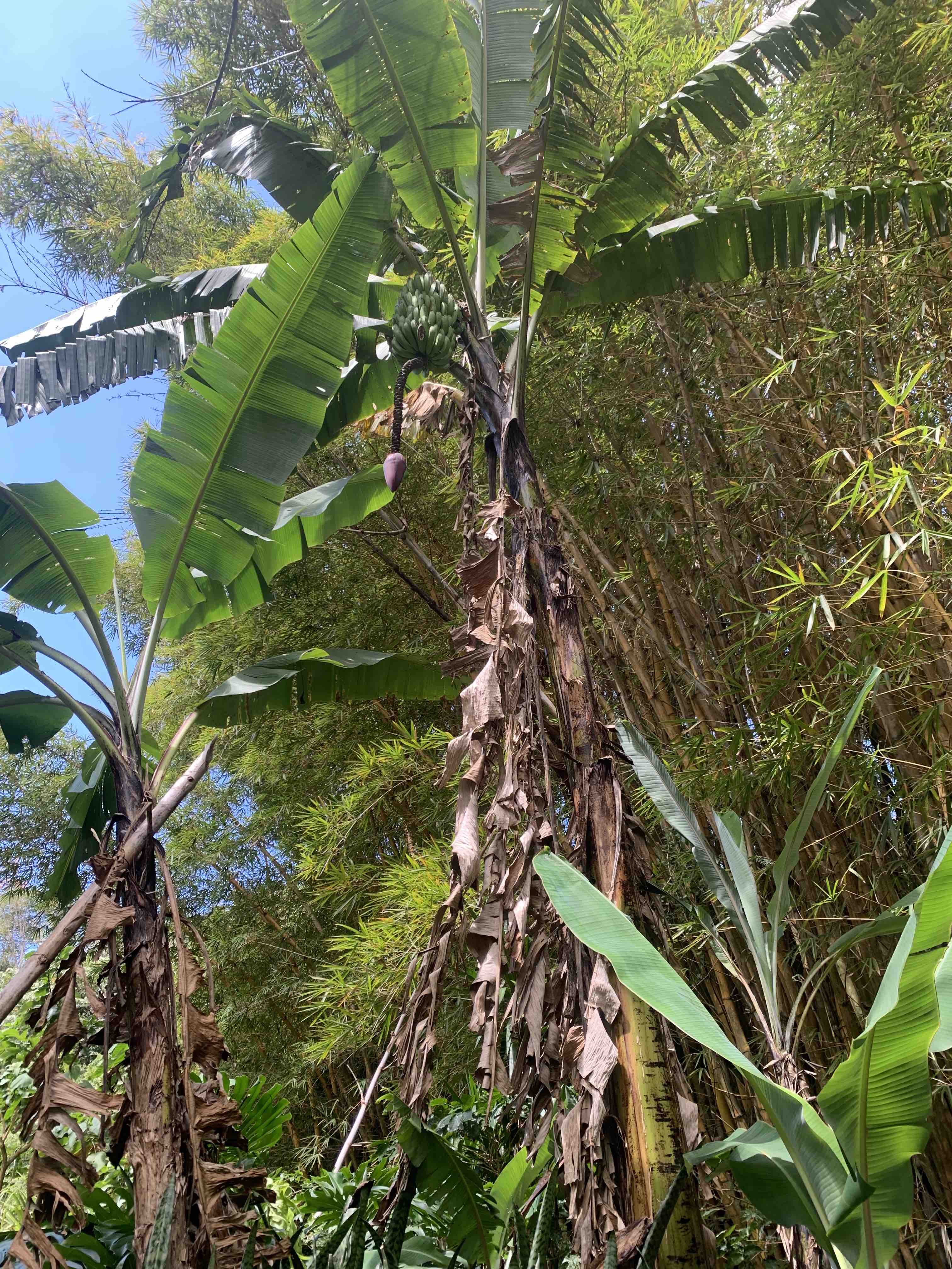 January is harvest time for most edibles growing on our property, mangos being the exception that comes mid-year. Near the top center of the image above there is a cluster of bananas. Roughly a hundred on that bunch. Bananas come in many varieties, I learned while living in India. To my surprise, just in recent months I learned that while banana is a fruit, it is botanically in the berry family. Large herbaceous flowering plants that have served as shade for coffee on this property for most of the last century, just a few feet to the right of those few banana trees are a few coffee trees.