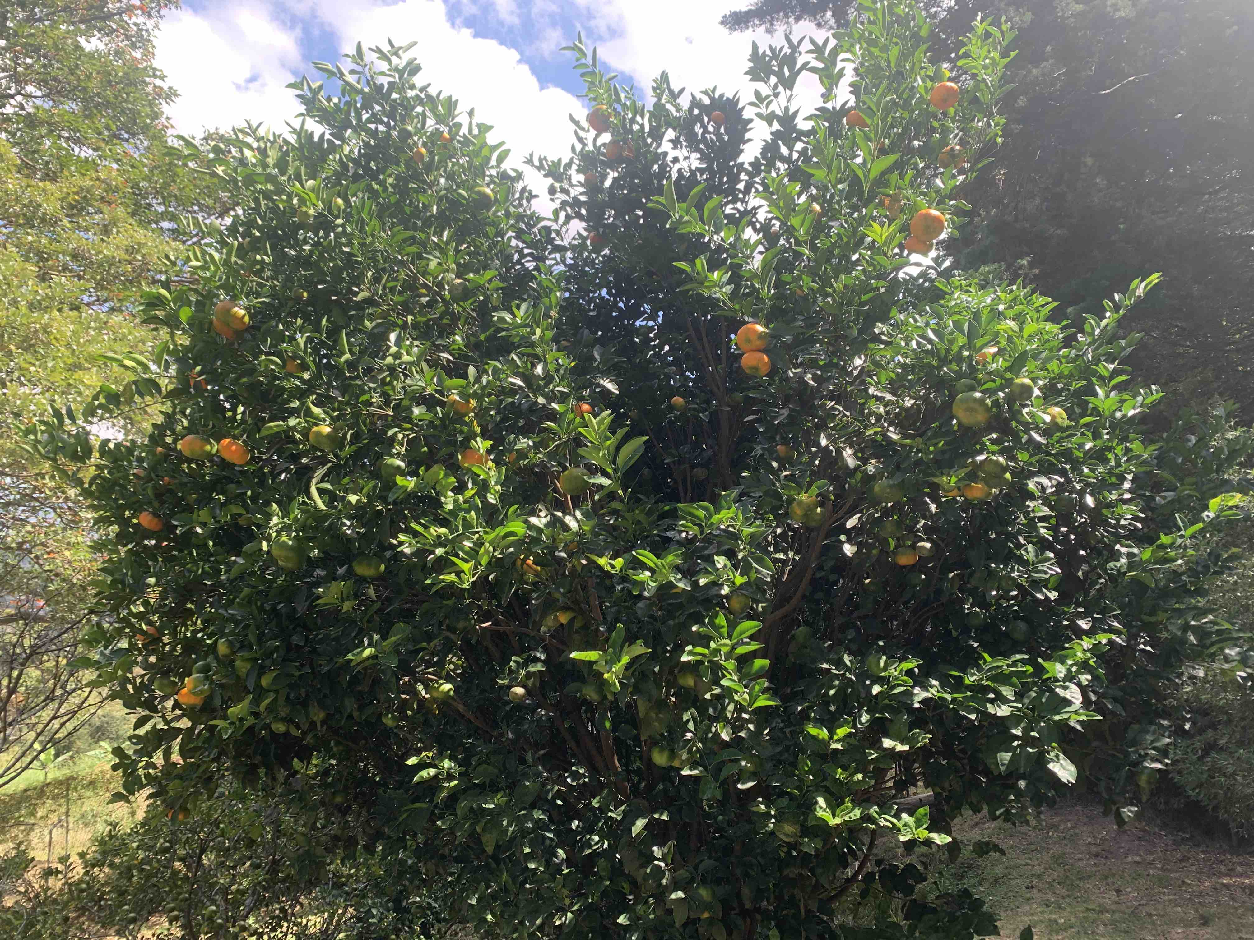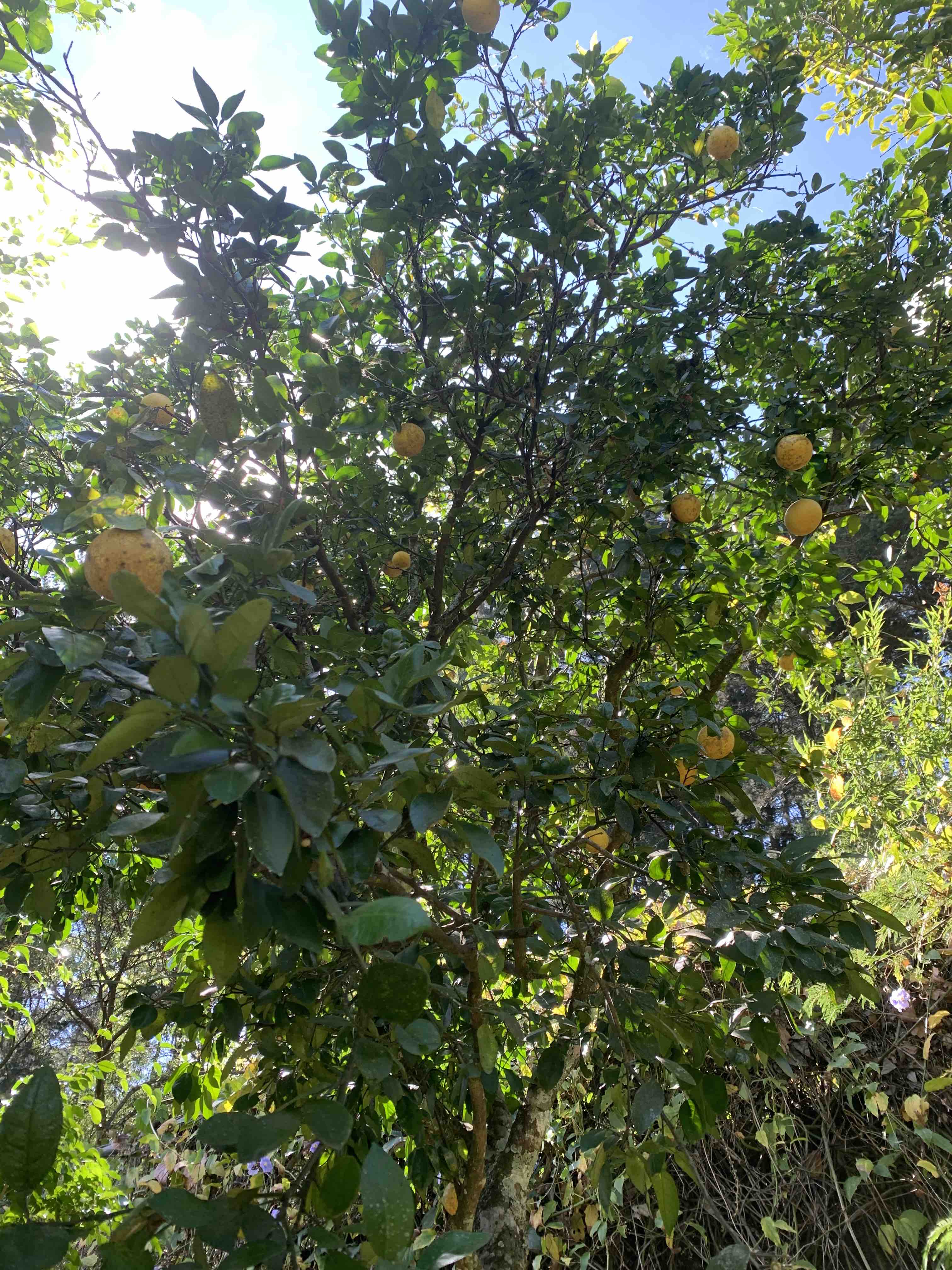 A mandarin orange tree across the property currently has at least 100 ripe fruits on it today. A few hours of harvest time. Even a smaller tree like the one below has 30 or so oranges of a different variety on it. An hour of harvest time.