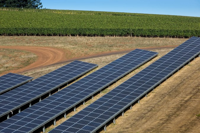 The market for electrons is predictable, meaning that solar panels installed on farmland can provide a fairly stable income for farmers. Photograph by George Rose / Getty