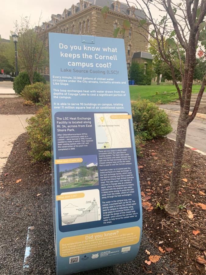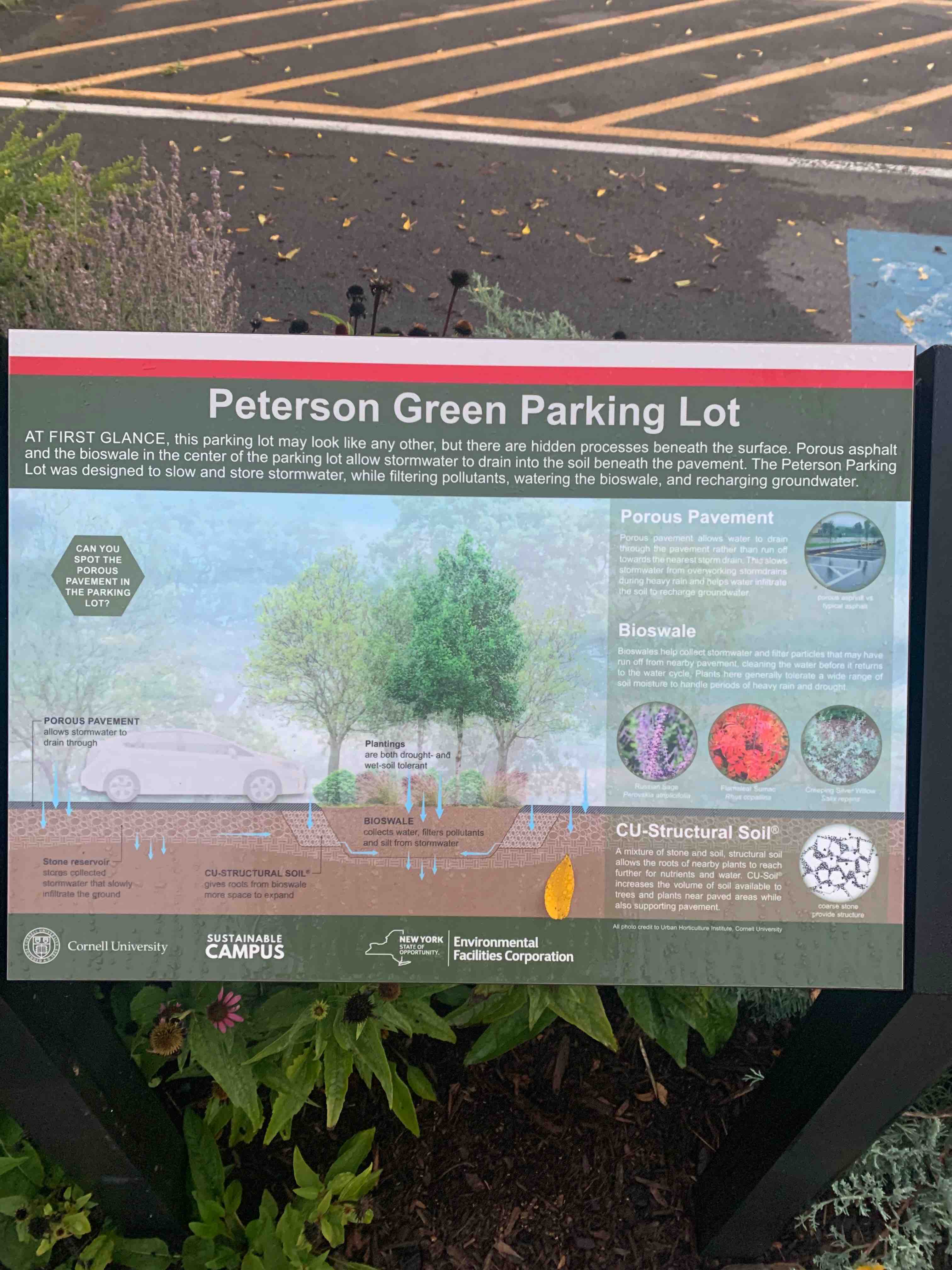 On my final morning of this visit to the Cornell campus I started a walk at sunrise. I discovered that parking lots around campus now have learning embedded in them.