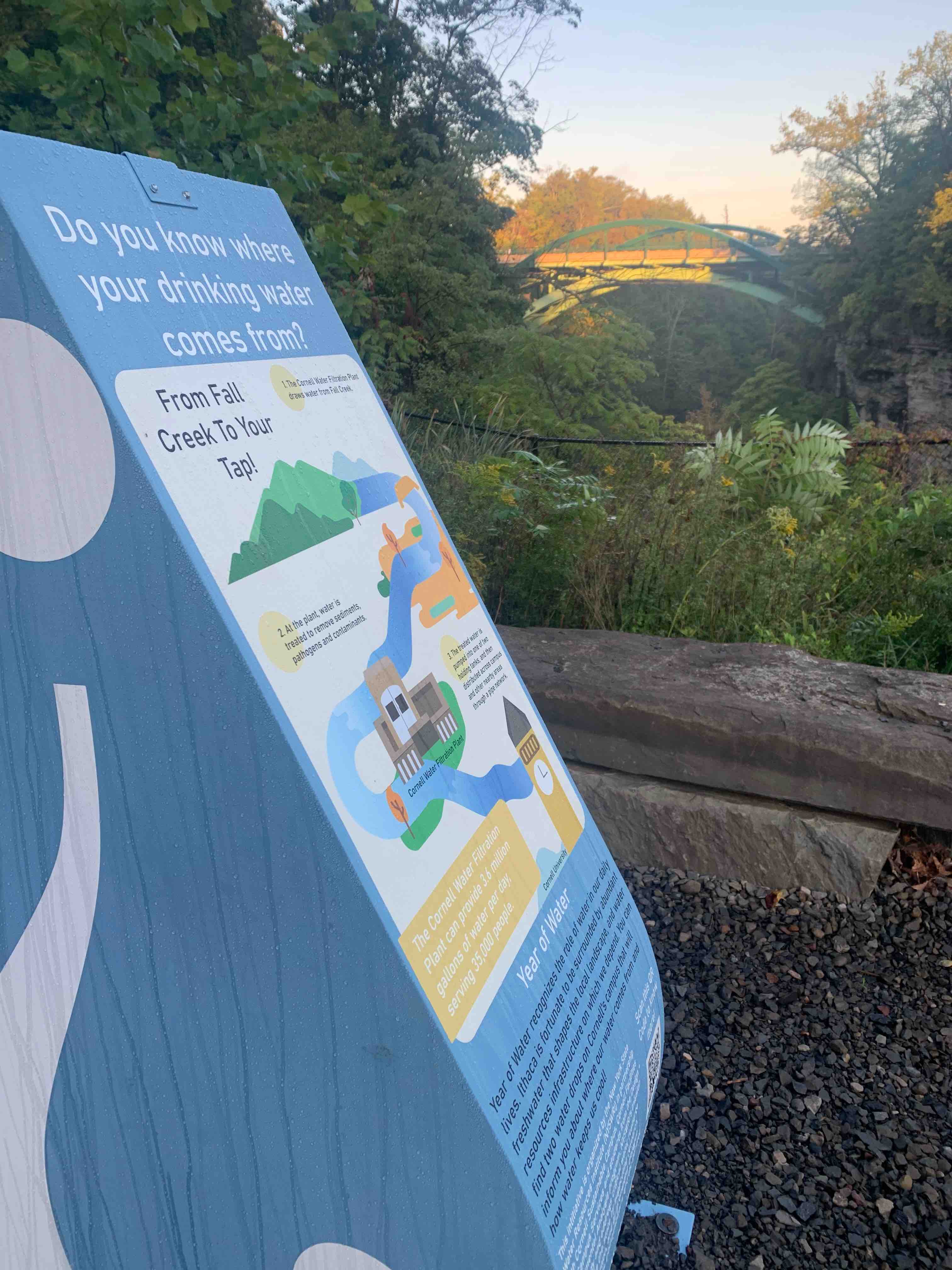 Where that signage initiative caught my attention again, in a new location, with a favorite bridge (which was part of my daily walk for the 1988-1989 academic year) in the background.