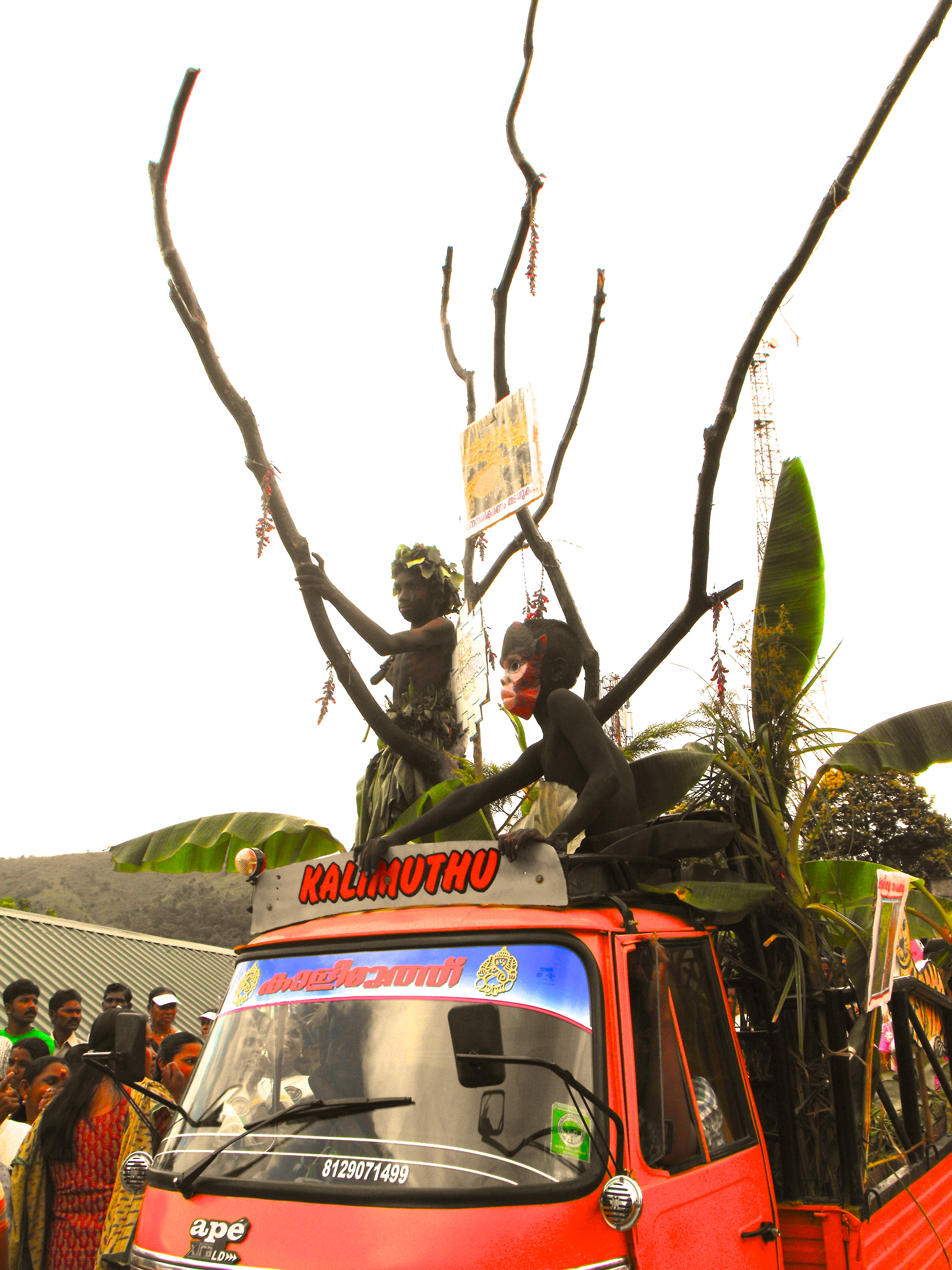 On the 8th of October Kumily held a parade in support of the Periyar Tiger Reserve and Wildlife Week. As an intern for Raxa Collective, I had the unique opportunity to participate in this procession. This was my first Indian parade, and in some ways it was very similar to the parades I had participated in the USA; the majority of people waited around in some confusion until someone with the knowledge of the lineup said to start walking, but what made this a very unique experience is I couldn’t understand the conversations of anyone besides my own party.